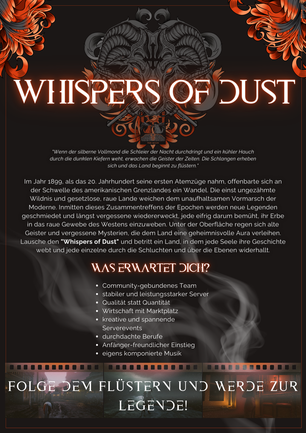 Wir streben danach, die Atmosphäre des Wilden Westens so authentisch wie möglich zu gestalten. Unsere Spieler sollen sich fühlen, als würden sie tatsächlich durch die Prärien, Wüsten und Berglandschaften des späten 19. Jahrhunderts reiten. Jede Handlung, jeder Dialog und jede Interaktion sollten in den Kontext dieser Zeit passen.